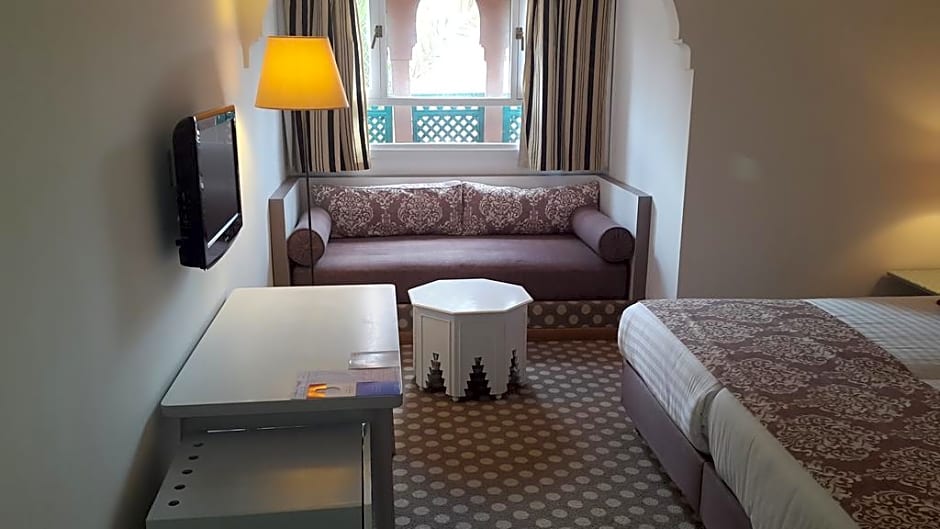 The air-conditioned rooms combine a traditional and modern style and a view of the pool or the garden. They include a telephone, a mini-bar and a flat-screen TV with satellite channels. This room has an extra bed to accommodate 3 people.